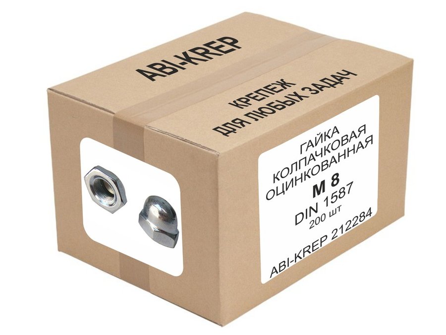 В корзину Купить в 1 клик Гайка колпачковая оцинкованная M8 DIN 1587 "ABI-KREP 212284" (200шт.) вес 1шт 7,52гр