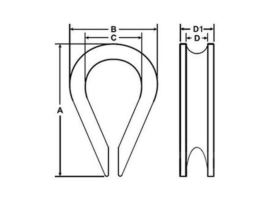 Коуш применяется для установки на трос при изготовлении петли. Предохраняет трос от перетирания, делает петлю плавной.