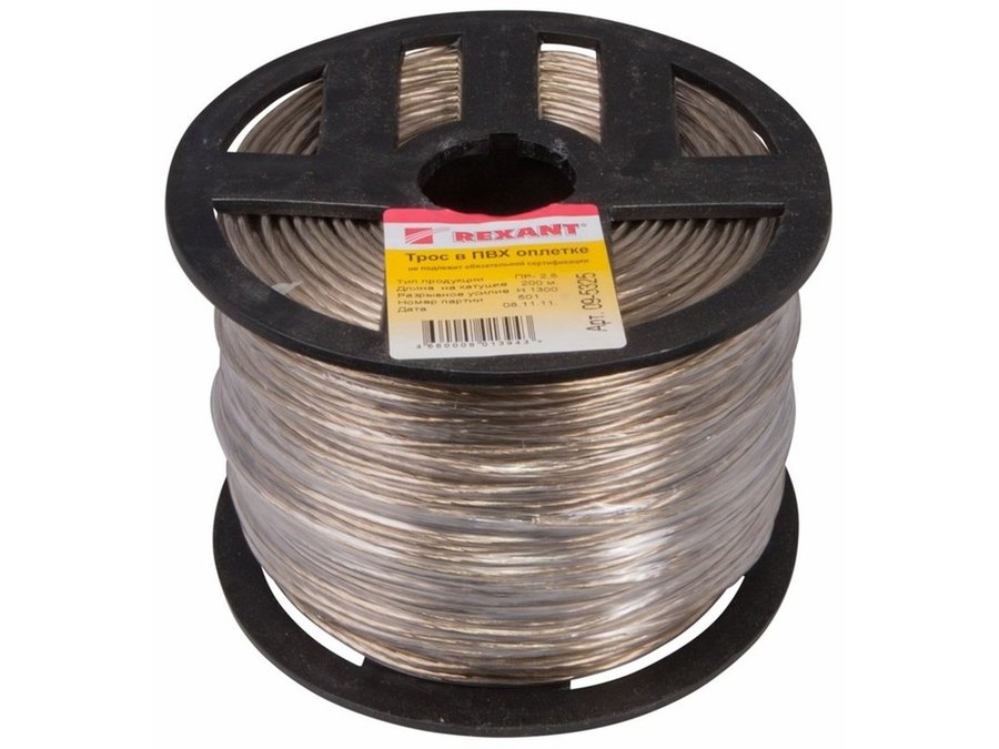 В корзину Купить в 1 клик 2,5мм трос стальной в ПВХ изоляции d=2.5 мм катушка 200 м