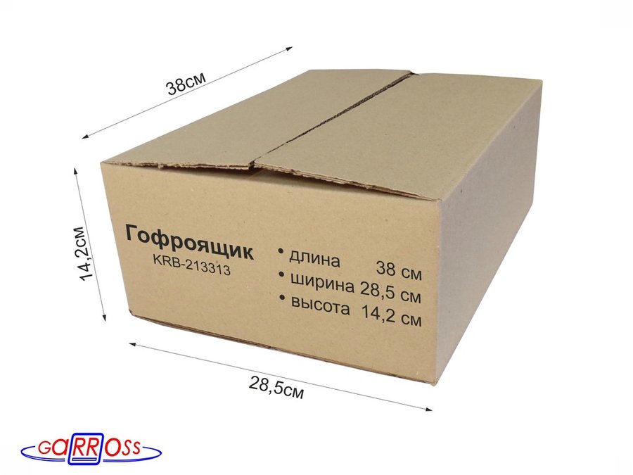 В корзину Купить в 1 клик Гофроящик, длина 380 х ширина 285 х высота 142 мм "KRB-213313" картонная коробка для упаковки