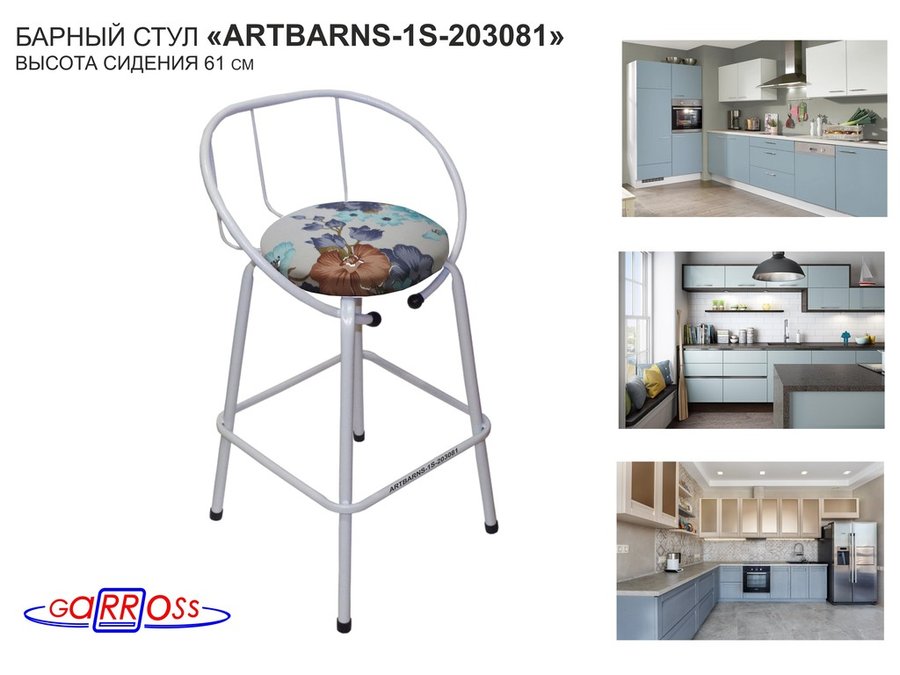 "ARTBARNS 1S-200539" cтул барный, табурет, спинка, высота 0,61метра,22мм,серые ножки/Форест 13 ткань