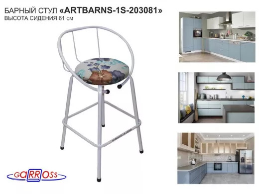 "ARTBARNS 1S-195193" cтул барный, табурет, спинка, высота 0,61метра, 22мм,серые ножки/Вольт 01 ткань