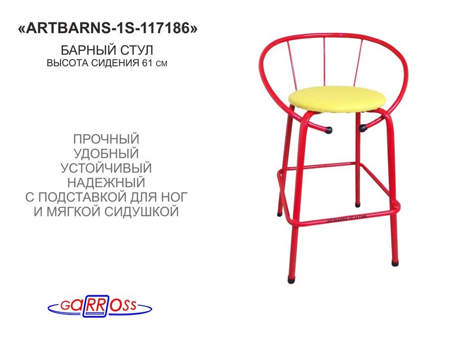 Барный стул "ARTBARNS-1S" органично дополнит интерьер модного заведения или домашней кухни. Стильная модель высотой 0,61 метра устойчиво стоит на четырех опорах с удобными подножками.