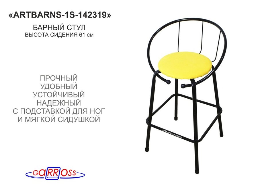 Барный стул "ARTBARNS-1S" органично дополнит интерьер модного заведения или домашней кухни. Стильная модель высотой 0,61 метра устойчиво стоит на четырех опорах с удобными подножками.