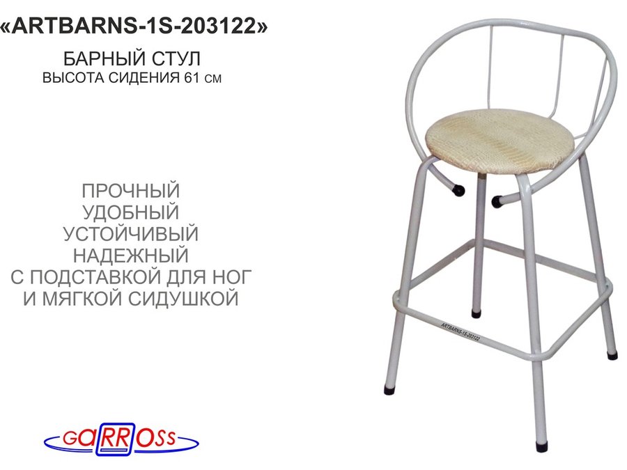 - "ARTBARNS-1S" позволит уютно расположиться, облокотиться на спинку и провести немало приятных минут за коктейлями и беседой. Сиденье удобной формы обито тканью.