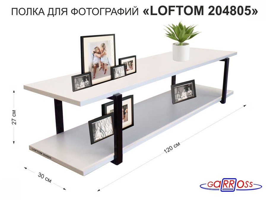В корзину Купить в 1 клик Полка для фотографий и игрушек, высота 25см "LOFTOM 204805" размер 120х30см, чёрный/сосна выбелен.