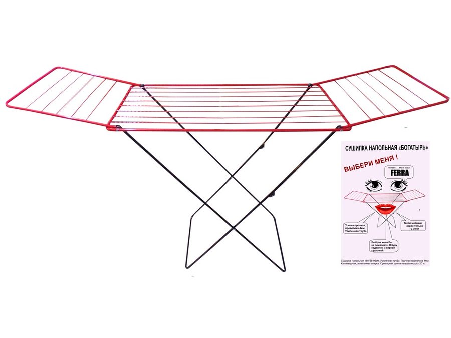"БОГАТЫРЬ" FERRA сушилка напольная КРАСНО-ЧЁРНАЯ 20 метров, усиленная труба, прочная проволока 4мм !
