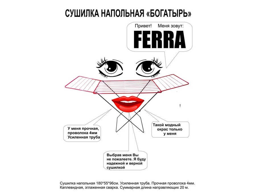 - "БОГАТЫРЬ" FERRA сушилка напольная КРАСНО-ЧЁРНАЯ 20 метров, предназначена для сушки белья