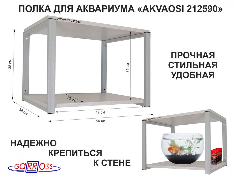 В корзину Купить в 1 клик Полки для аквариумов, высота 38см "AKVAOSI 212590" две полки 35х54см, серый/сосна выбеленная