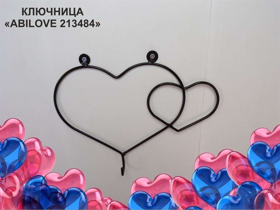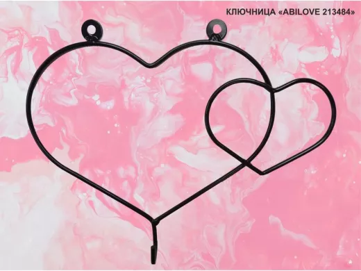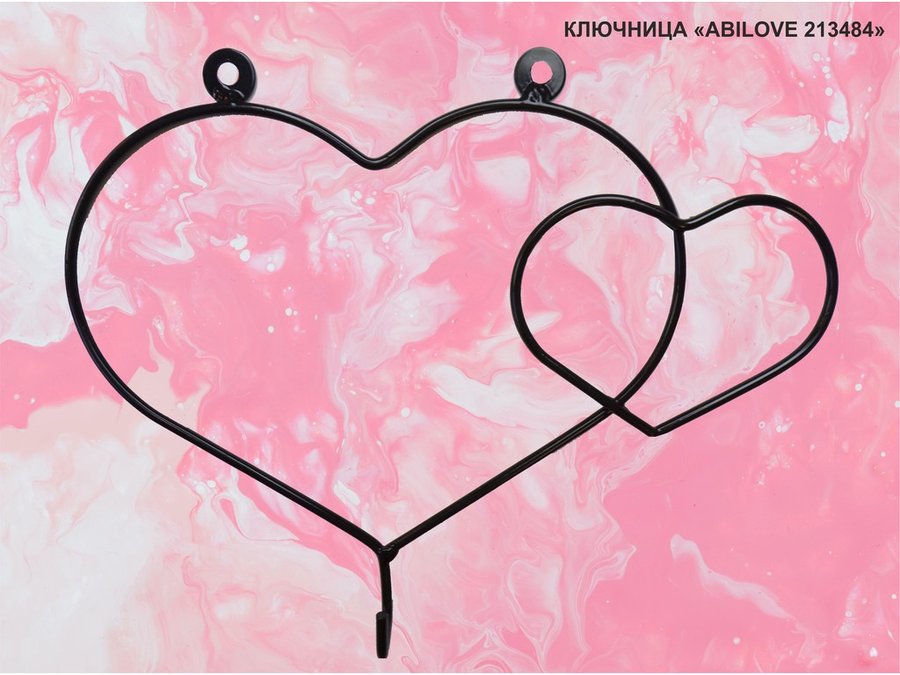 Ключница, держатель полотенец, вешалка в прихожую, два сердца с крючком, чёрный "ABILOVE 213484"