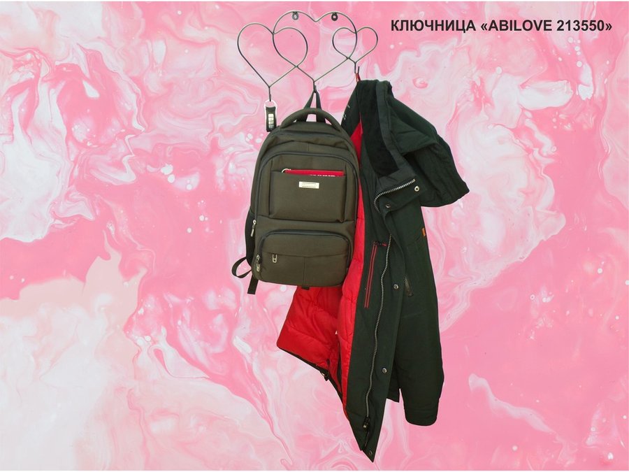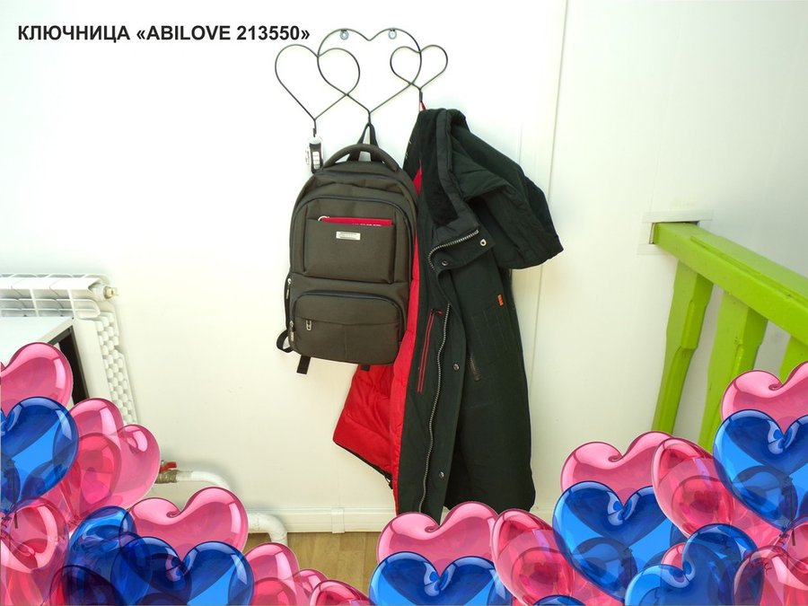 Ключница, держатель полотенец, вешалка в прихожую, три сердца с крючками, чёрный "ABILOVE 213550"