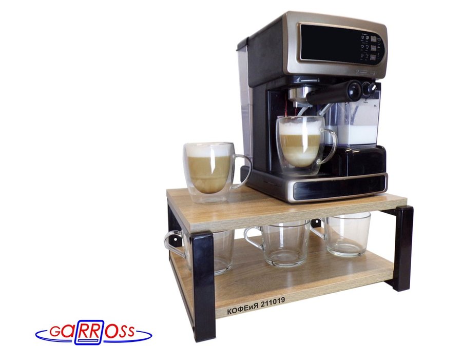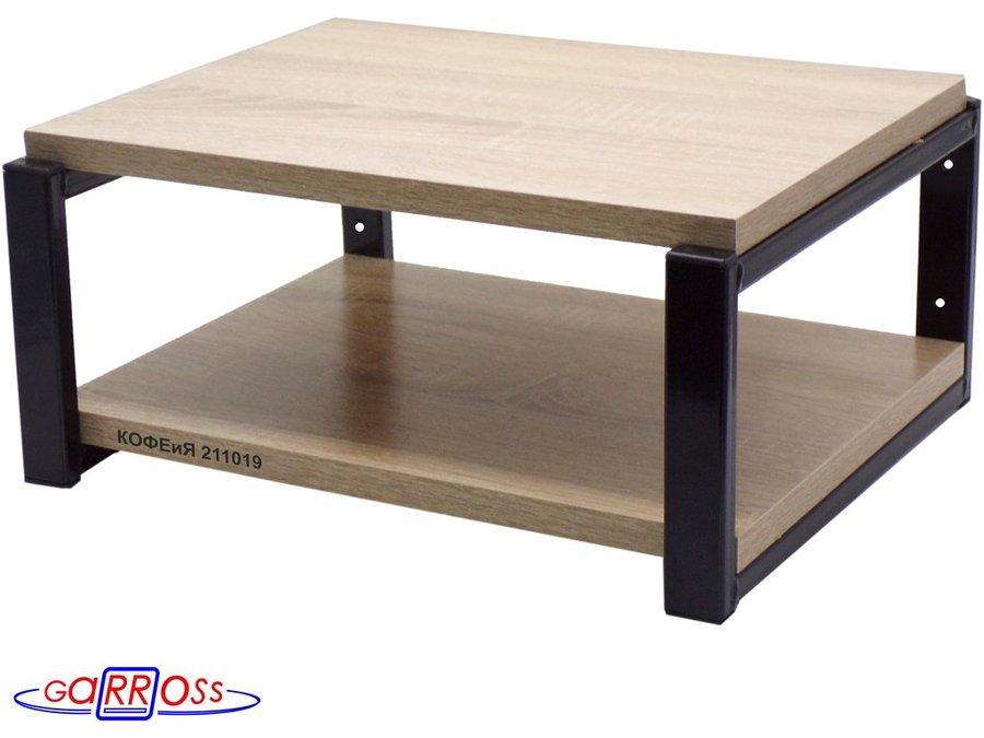 Полка под кофемашину к стене, высота 17см, черный каркас "КОФЕиЯ 211019" полки 30х40см, дуб