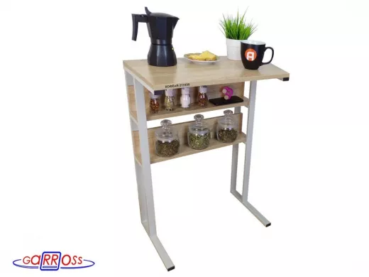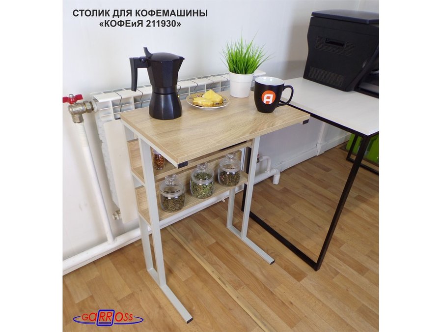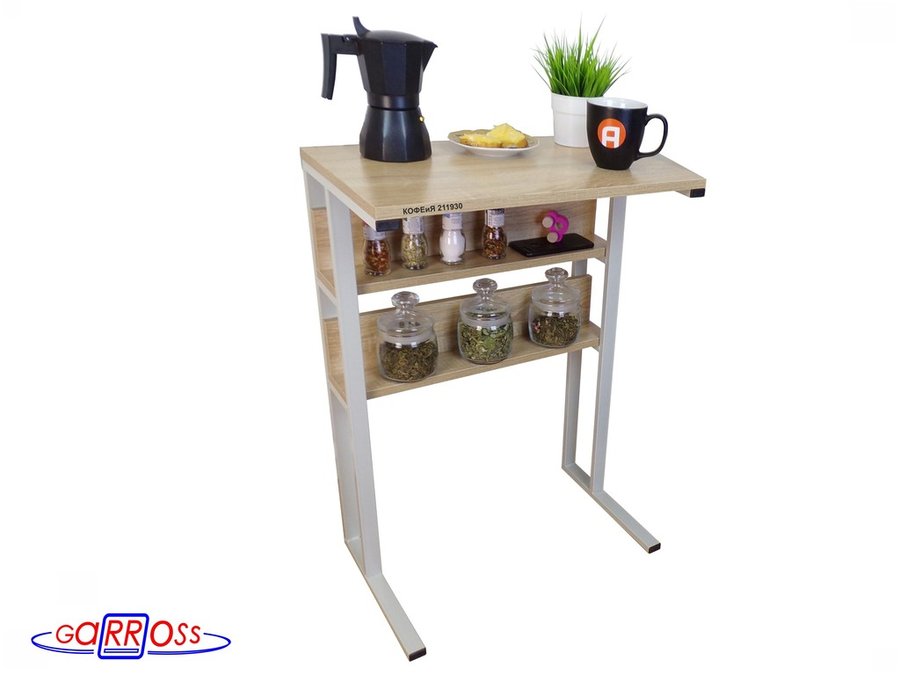 Столик для кофемашины "КОФЕиЯ 211930" высота 79 см с двумя полками для стаканов и банок, серый, дуб