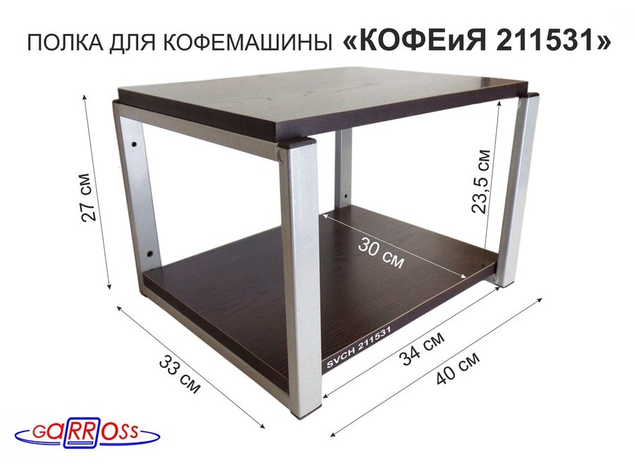 Полка под кофемашину к стене, высота 27см, серый каркас "КОФЕиЯ 211531" полки 30х40см, венге