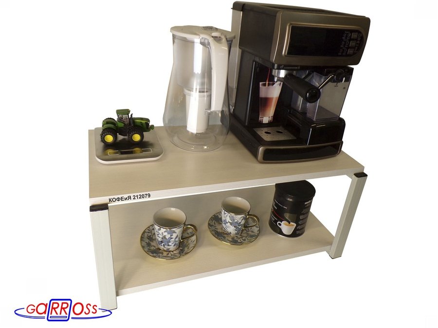 Полка под кофемашину к стене, высота 27см, серый каркас "КОФЕиЯ 212079" полки 30х60см, сосна