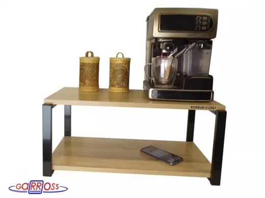 Полка под кофемашину к стене, высота 27см, черный каркас "КОФЕиЯ 212081" полки 30х60см,дуб соном