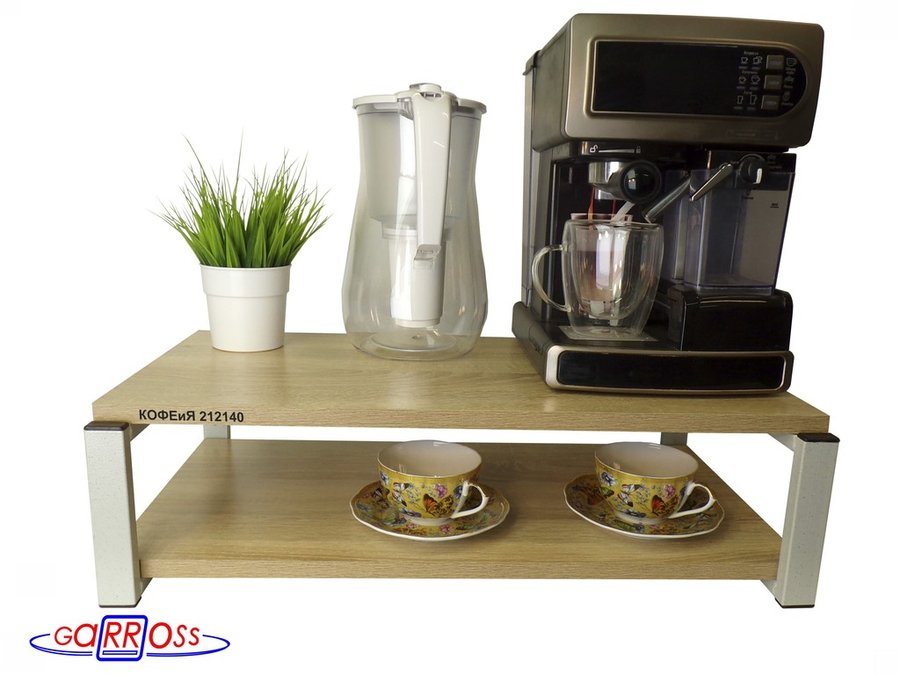 Полка для кофемашины, серая "КОФЕиЯ 212140" высота 17 см, полки 30х60 см, дуб сонома, 2 уровня