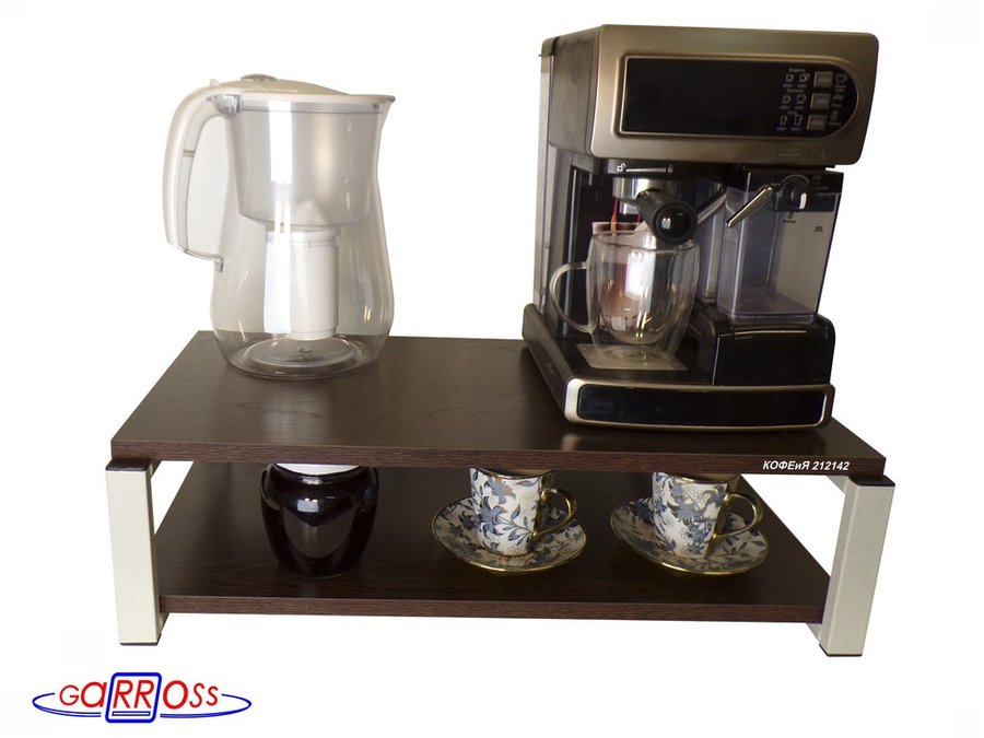 Полка для кофемашины, серая "КОФЕиЯ 212142" высота 17 см, полки 30х60 см, венге, 2 уровня