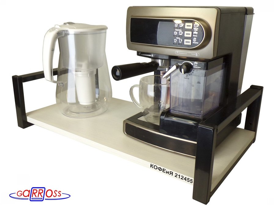 Полка для кофемашины, черная "КОФЕиЯ 212455" высота 15 см, полка 30х60 см, сосна, 1 уровень