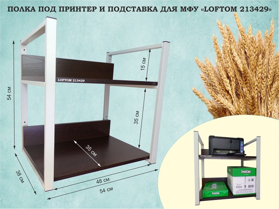 Полки под принтер или МФУ "LOFTOM" высота 54см, с полками 54х35см, с бортиками