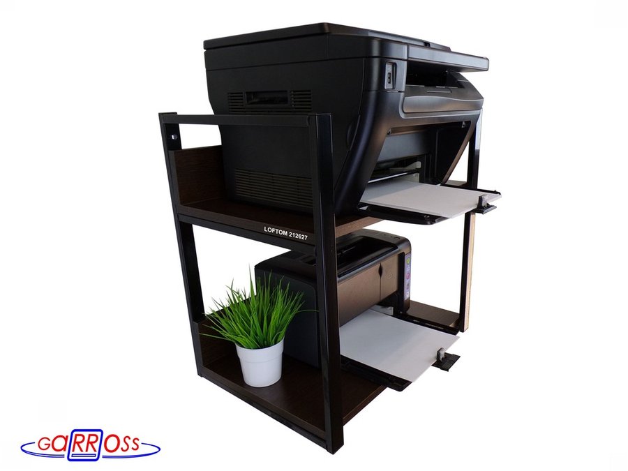 Полка под принтер и подставка для МФУ, высота 54см черная "LOFTOM 212627" 2 уровня, 35х54см, венге