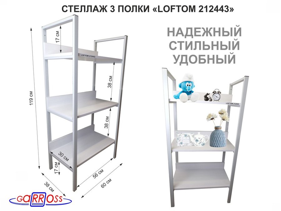 Стеллажи универсальные "LOFTOM" с 3 полками 0,6х0,3 м, высотой 1,2 м