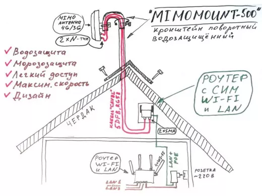 - Появляется возможно красиво установить антенну для мобильного интернета, добиться высоких скоростей и длительного срока службы.