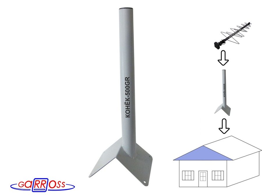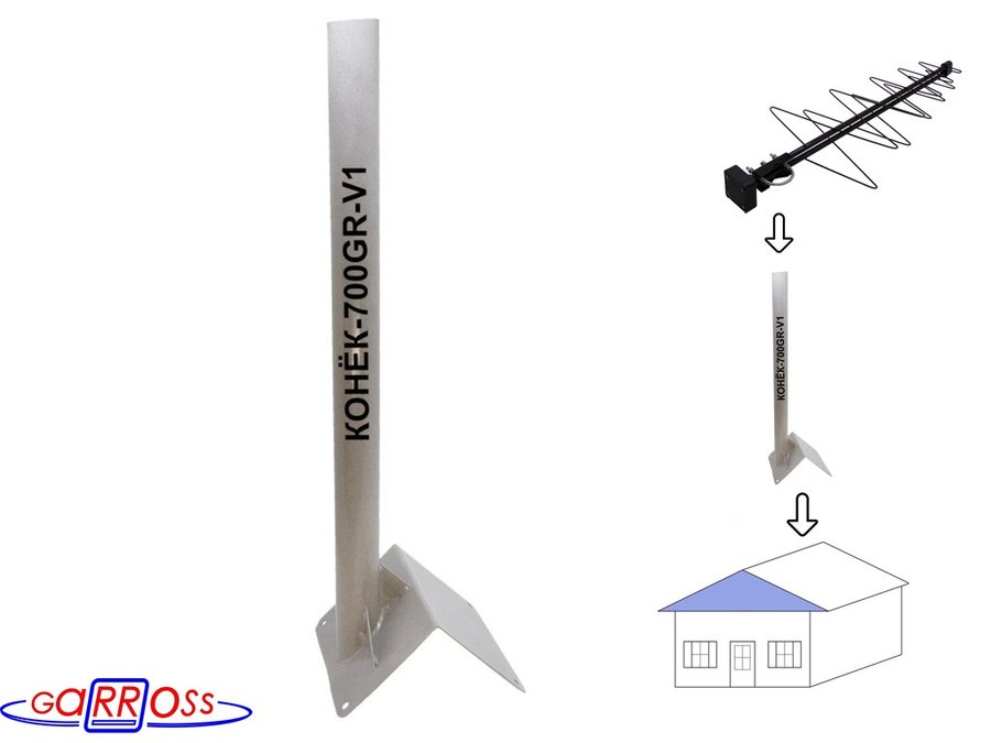 Кронштейн антенный на конёк крыши "КОНЁК-V4-700GR-216113" серый, высота 70 см, диам.51мм с заглушкой