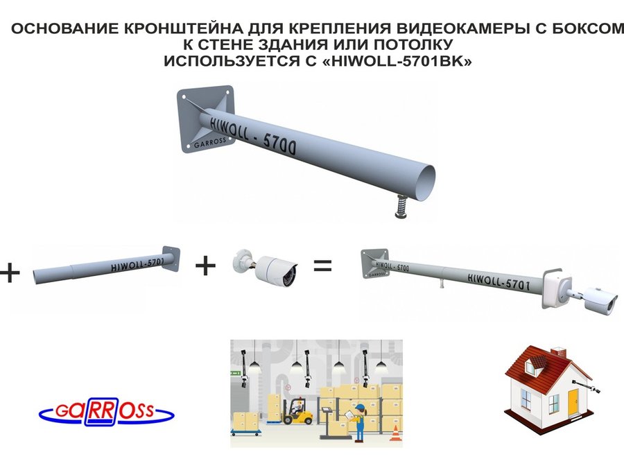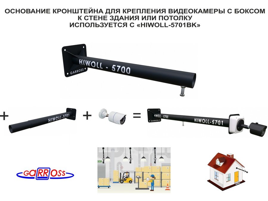 Кронштейн "HIWOLL-VILET- 700B" бокс для 2-х видеокамер и прожекторов на стену, вылет 0,7метра,чёрный