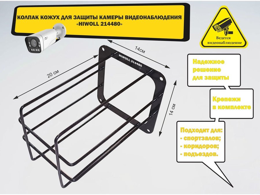 В корзину Купить в 1 клик Колпак кожух для камеры видеонаблюдения, основание 14х14х20см "HIWOLL-214480", вылет 20см, черный