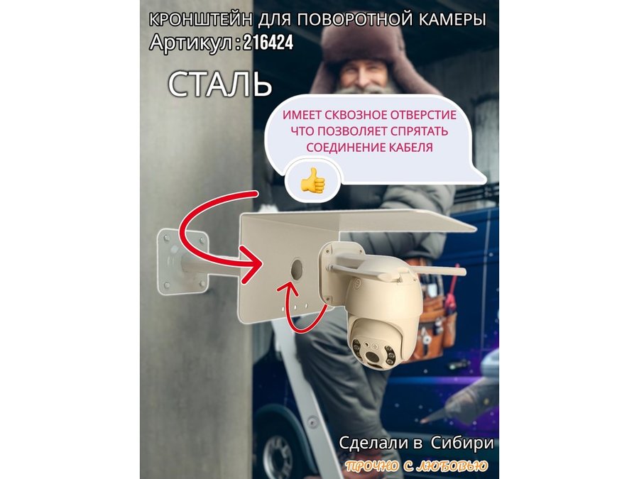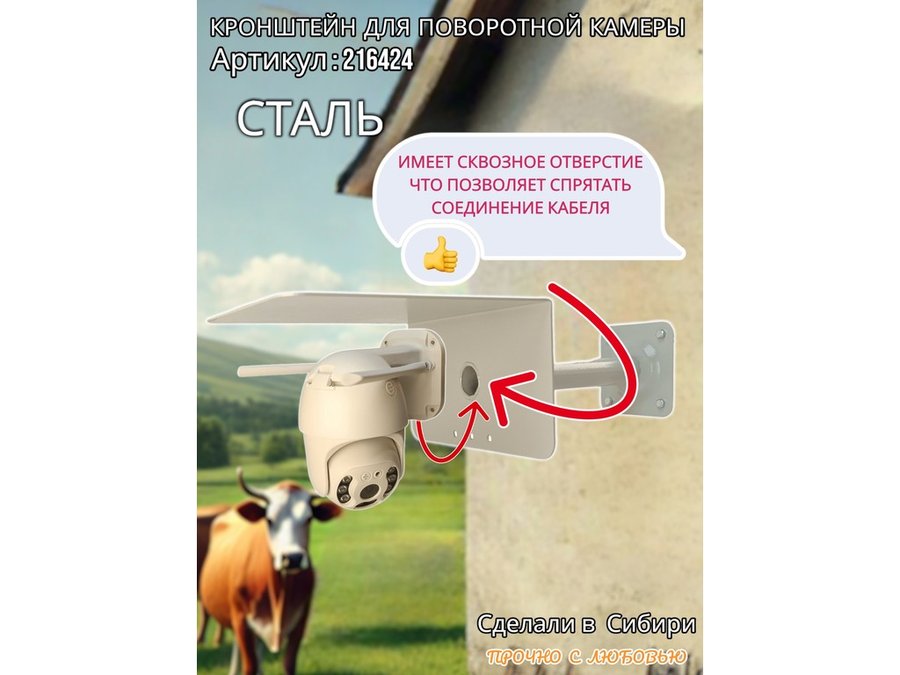 - Стальной кронштейн позволяет вынести камеру от стены на 25 см.