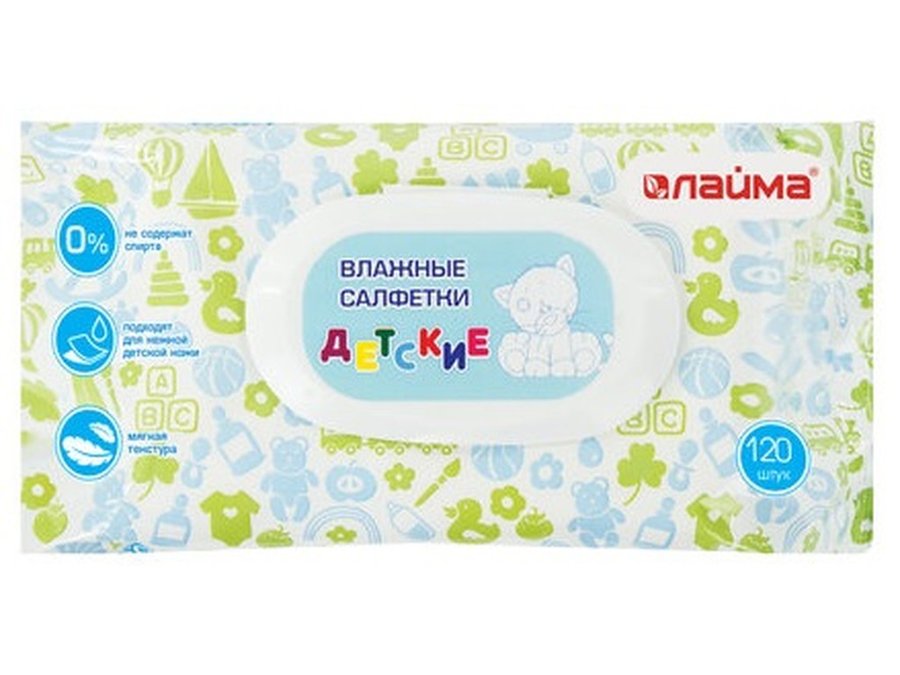 В корзину Купить в 1 клик Салфетки влажные КОМПЛЕКТ 120 шт, для детей "BR-78412", универсальные очищающие, клапан крышка