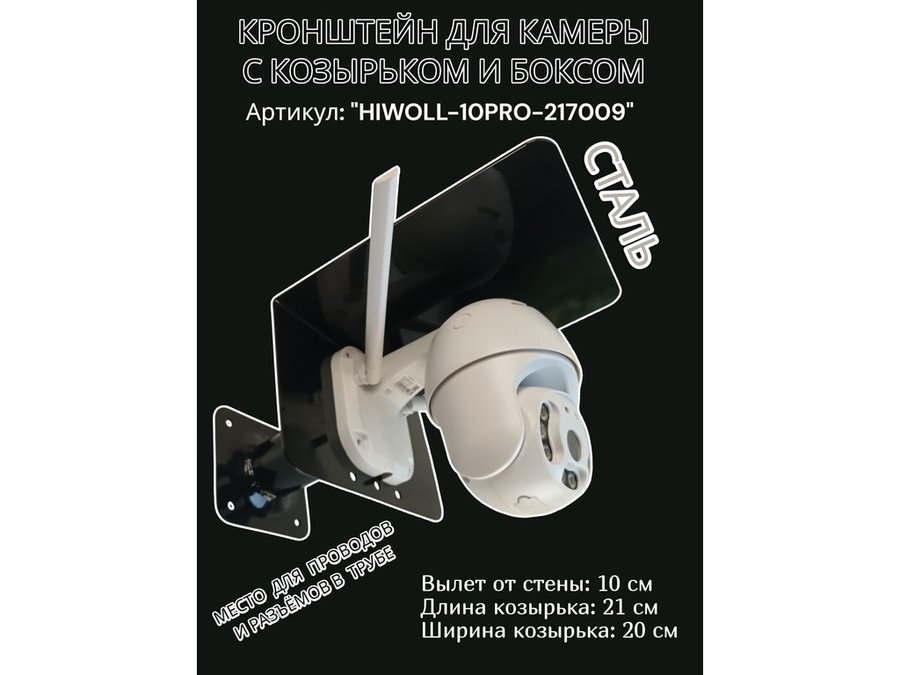 Кронштейн с боксом и козырьком для видеокамеры "HIWOLL-10PRO-217009" черный, вылет 10см, сталь
