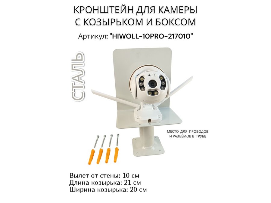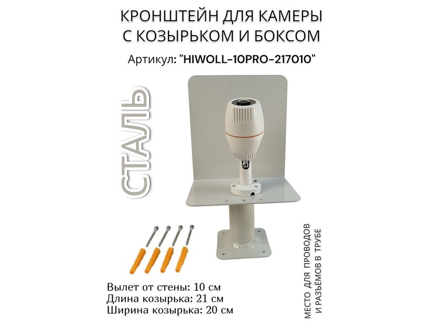 Кронштейн с боксом и козырьком для видеокамеры "HIWOLL-10PRO-217010" серый, вылет 10см, сталь