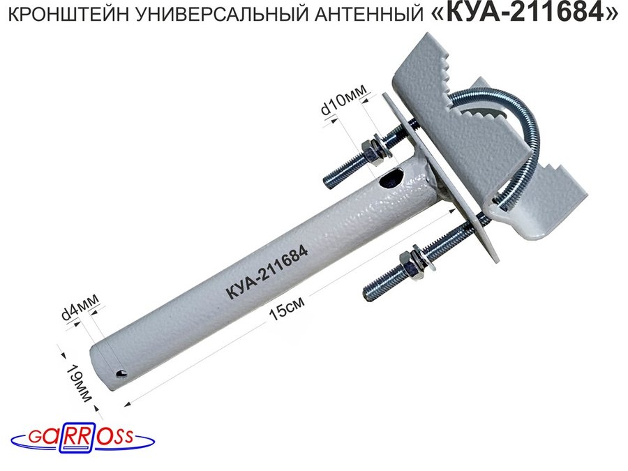 В корзину Купить в 1 клик Кронштейн универсальный антенный к стене или на мачту "КУА-211684" серый, диаметр трубы 19мм