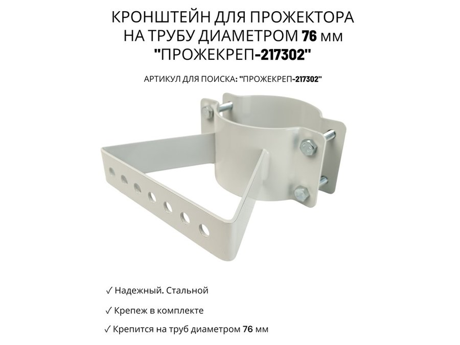 - Кронштейн усиленный предназначен для крепления светодиодных прожекторов на трубе диаметром 76 мм.На трубу крепится с помощью болтов с гайками.