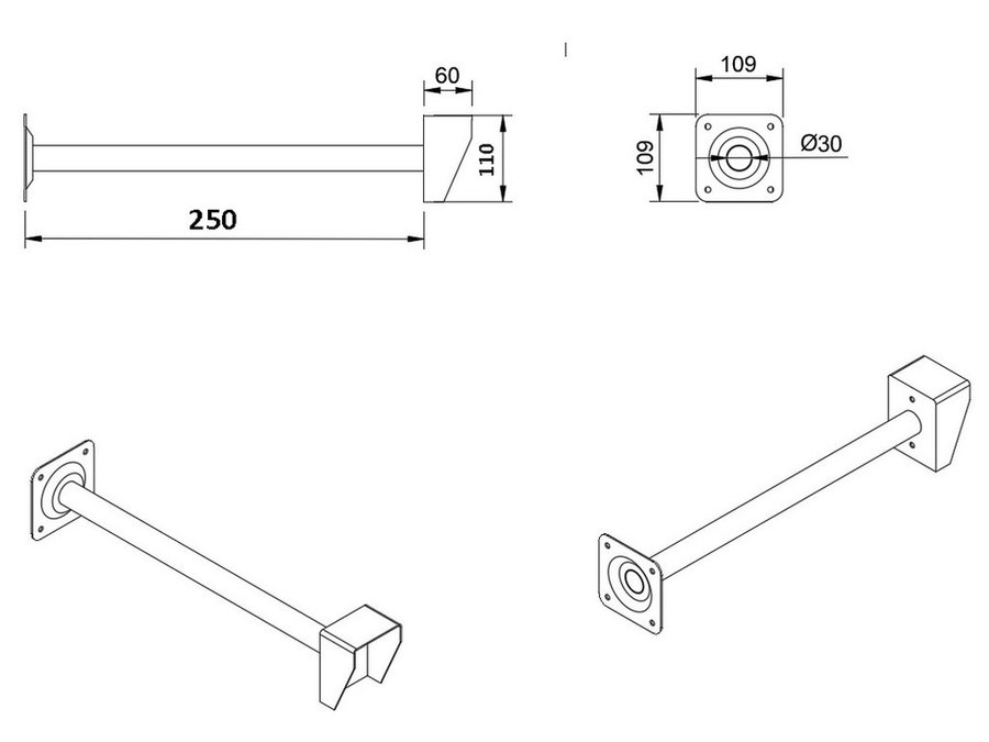 - Для крепления используются четыре отверстия в основании кронштейна.