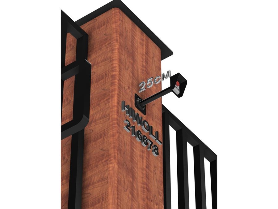 - Вылет 25 см позволяет оттянуть кнопку выхода дальше от калитки.