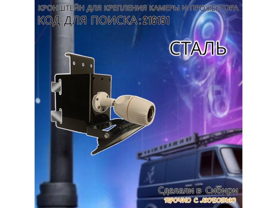 Кронштейн универсальный на трубу или столб для камеры или прожектора "ПРОЖЕКРЕП-216151" сталь,черный