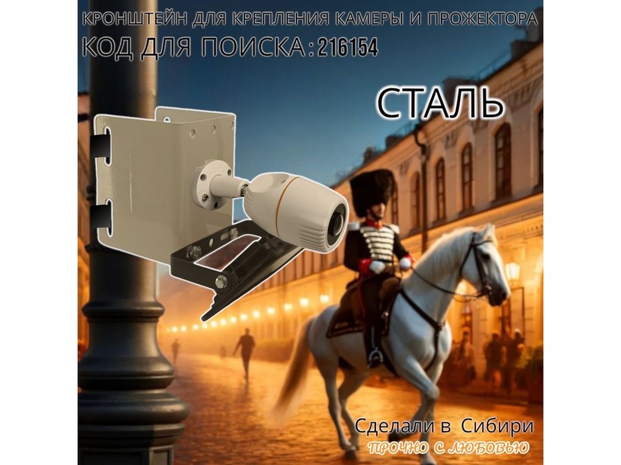 - Кронштейн позволяет быстро зафиксировать прожектор или камеру наблюдения на столб или трубу.