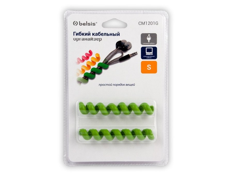В корзину Купить в 1 клик Органайзер кабельный гибкий, тип "пружина", 10 см, зеленый, 2 шт. в блистере EAN