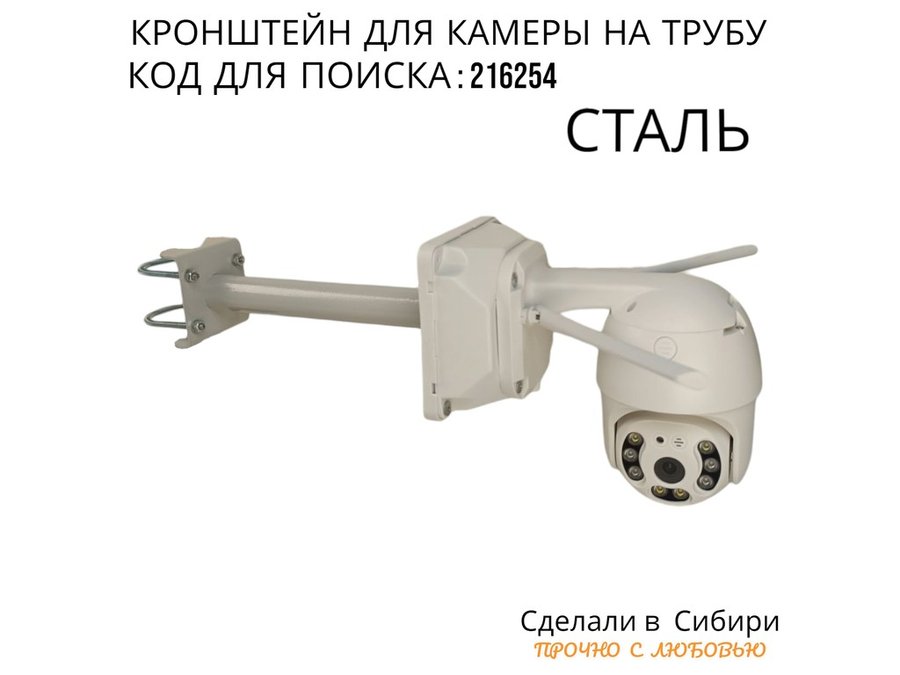- Кронштейн предназначен для крепления поворотной или цилиндрической камеры на трубу.