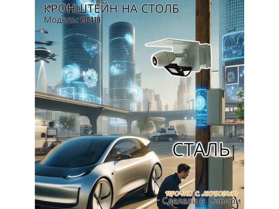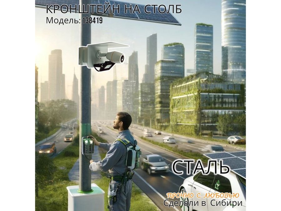 - Кронштейн позволяет быстро зафиксировать камеру на столбе, не сверля его.