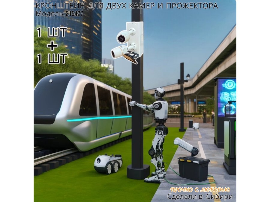 В корзину Купить в 1 клик Набор 2шт. Кронштейн для двух камер и прожектора на столб белый "IPAHD-201W-215427" под СИП-ленту