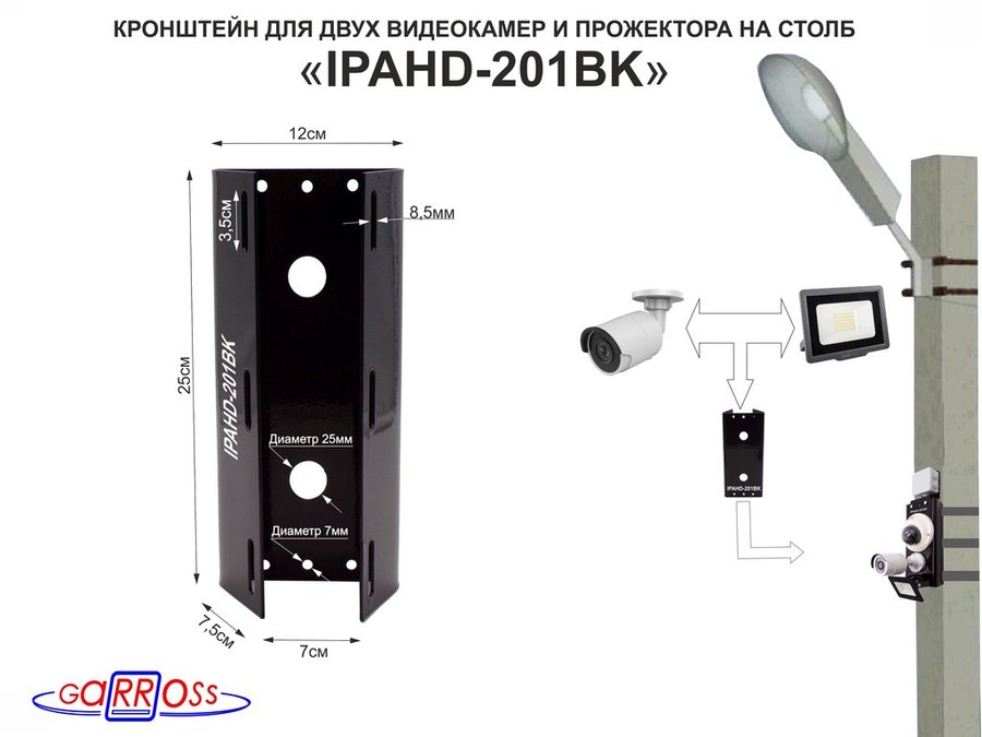 В корзину Купить в 1 клик Кронштейн"IPAHD-202BK" ЧЁРНЫЙ для 2камер и прожектора на столб под СИП-ленту,вылет 80мм,150мм