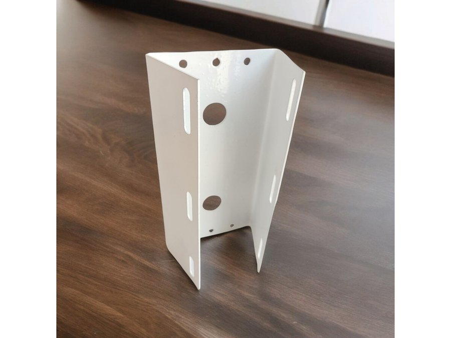 - Кронштейн позволяет быстро зафиксировать прожектор на столбе при помощи ленты или хомутов, не сверля сам столб.