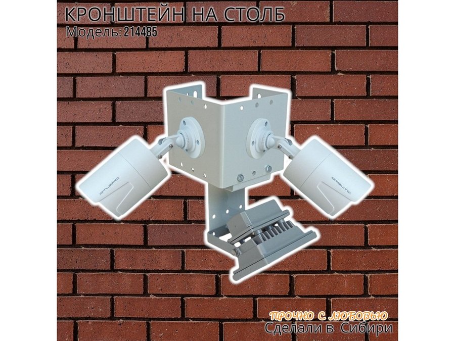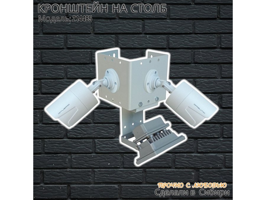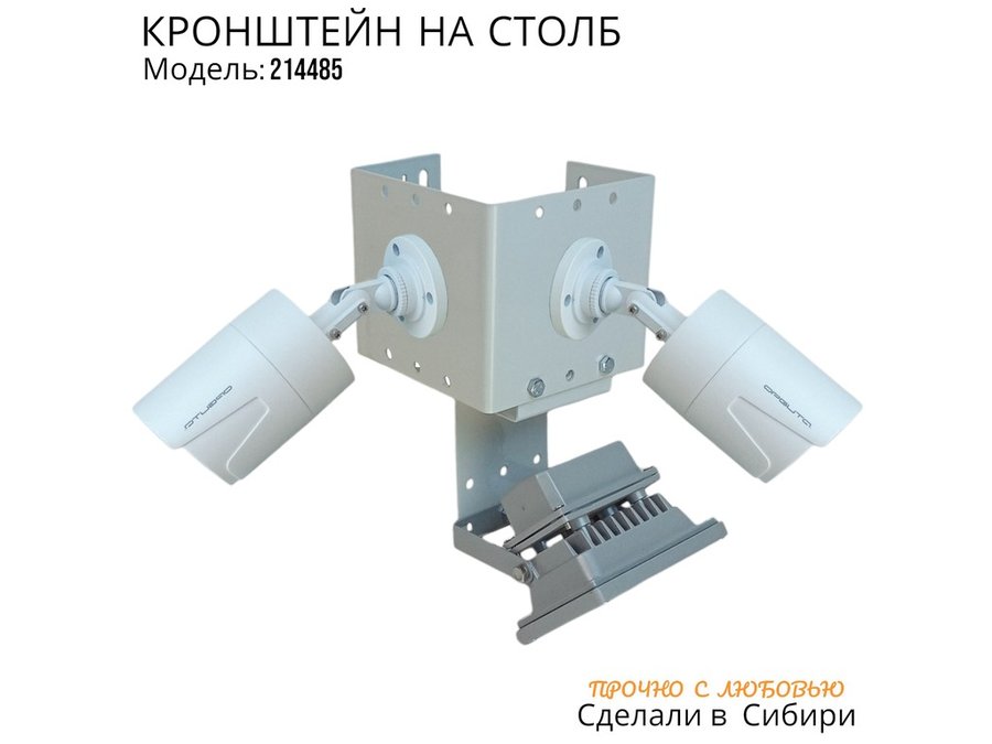 - Кронштейн для двух камер и прожектора, крепится при помощи СИП ленты монтажной на квадратный или круглый столб.