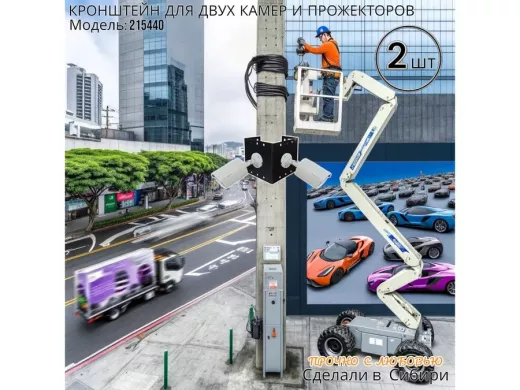 Набор 2 шт. Кронштейн для двух камер и прожекторов на столб черный "IPAHD-5-215440" под СИП ленту