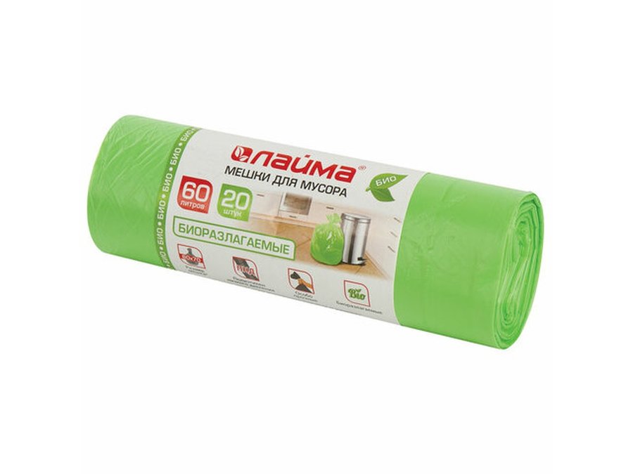 В корзину Купить в 1 клик Мешки для мусора 60литров, БИОРАЗЛАГАЕМЫЕ, зеленые, 20шт,ПНД, 15мкм, 60х70см,прочные "BR-78284"