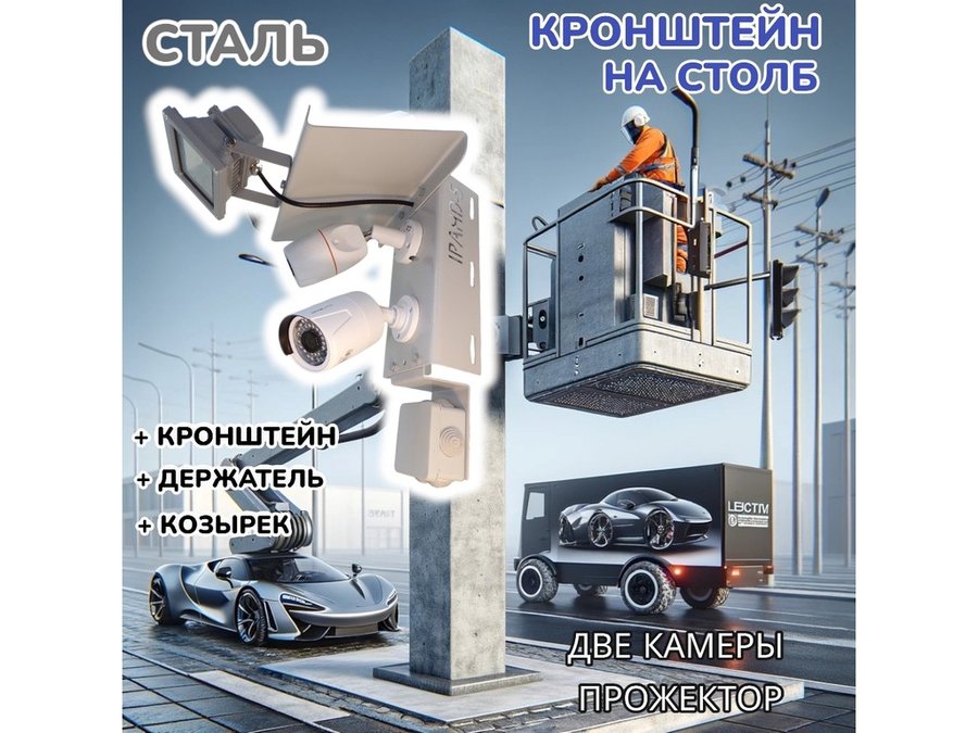 В корзину Купить в 1 клик Кронштейн для двух камер и прожектора на столб с козырьком и пластиной серый "IPAHD-5-214548"